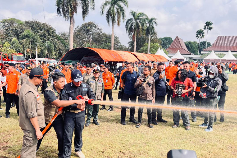 Puncak kegiatan hari itu adalah simulasi penanggulangan karhutla. Skenario yang ditampilkan bukan sekadar teatrikal. Drone melacak titik api. Tim TNI dan Polri mengevakuasi warga. Manggala Agni dan BPBD turun tangan memadamkan api. Semua dilakukan dalam waktu singkat—menggambarkan kekompakan yang dibangun bertahun-tahun.