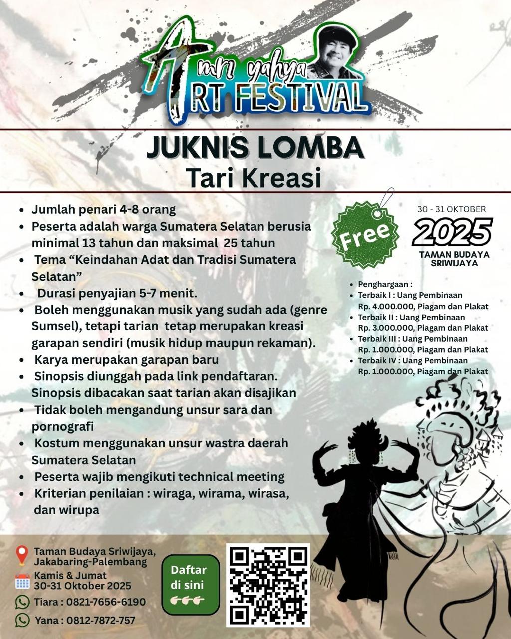 “Amri Yahya Art Festival bukan sekadar lomba, tapi perayaan jati diri kita sebagai orang Sumatera Selatan — kreatif, religius, dan mencintai budaya,” ujar salah satu panitia dalam konferensi persnya.