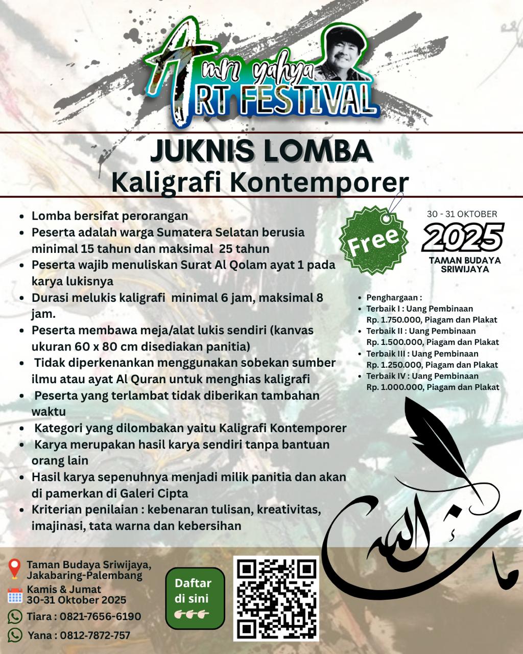 Festival ini bukan sekadar ajang lomba, tetapi juga bentuk penghormatan terhadap semangat maestro seni rupa asal Palembang, Amri Yahya, yang sepanjang hidupnya menjadikan seni sebagai jalan kebudayaan dan dakwah.