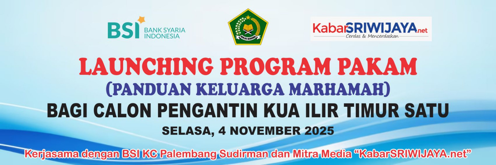 PALEMBANG | KabarSriwijaya.NET – Kantor Urusan Agama (KUA) Ilir Timur Satu Kota Palembang bekerja sama dengan Bank Syariah Indonesia (BSI) Kantor Cabang Palembang Sudirman meluncurkan Program PAKAM (Panduan Keluarga Marhamah), sebuah inovasi dalam bentuk buklet panduan ringkas berisi tips dan tuntunan agama seputar pembinaan keluarga sakinah, mawaddah, warahmah, Selasa (4/11/2025).