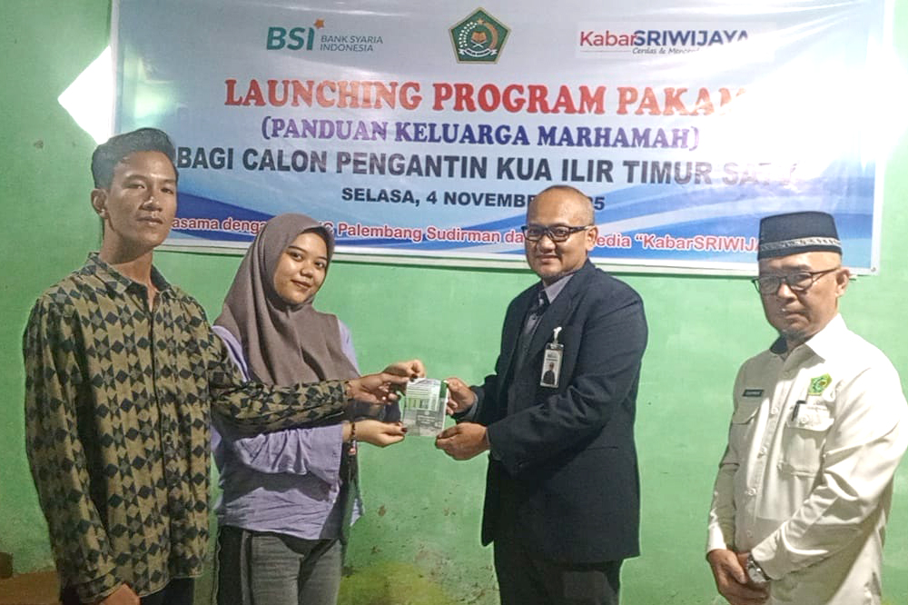 PALEMBANG | KabarSriwijaya.NET – Kantor Urusan Agama (KUA) Ilir Timur Satu Kota Palembang bekerja sama dengan Bank Syariah Indonesia (BSI) Kantor Cabang Palembang Sudirman meluncurkan Program PAKAM (Panduan Keluarga Marhamah), sebuah inovasi dalam bentuk buklet panduan ringkas berisi tips dan tuntunan agama seputar pembinaan keluarga sakinah, mawaddah, warahmah, Selasa (4/11/2025).