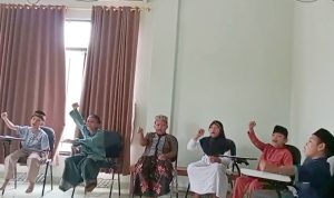 Di ruangan, ada 13 anak duduk melingkar. Sebagian masih kaku, malu dan kikuk duduk di kursi lipat. Sebagian lagi duduk seerti di kelas layaknya sekolah biasa. Inilah pelaksanaan perdana Kelas Pelatihan Public Speaking dan Dai Cilik khusus santri MI Laa Roiba Muaraenim.