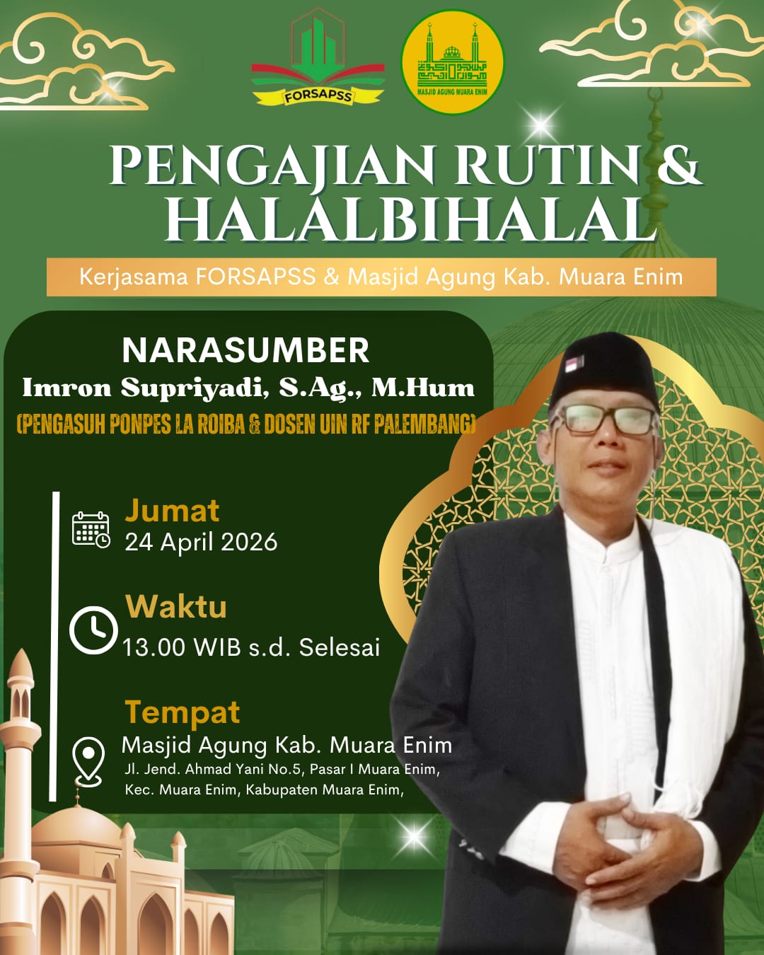 FORSAPSS Muara Enim Akan Gelar Pengajian Rutin dan Halal Bihalal di Masjid Agung