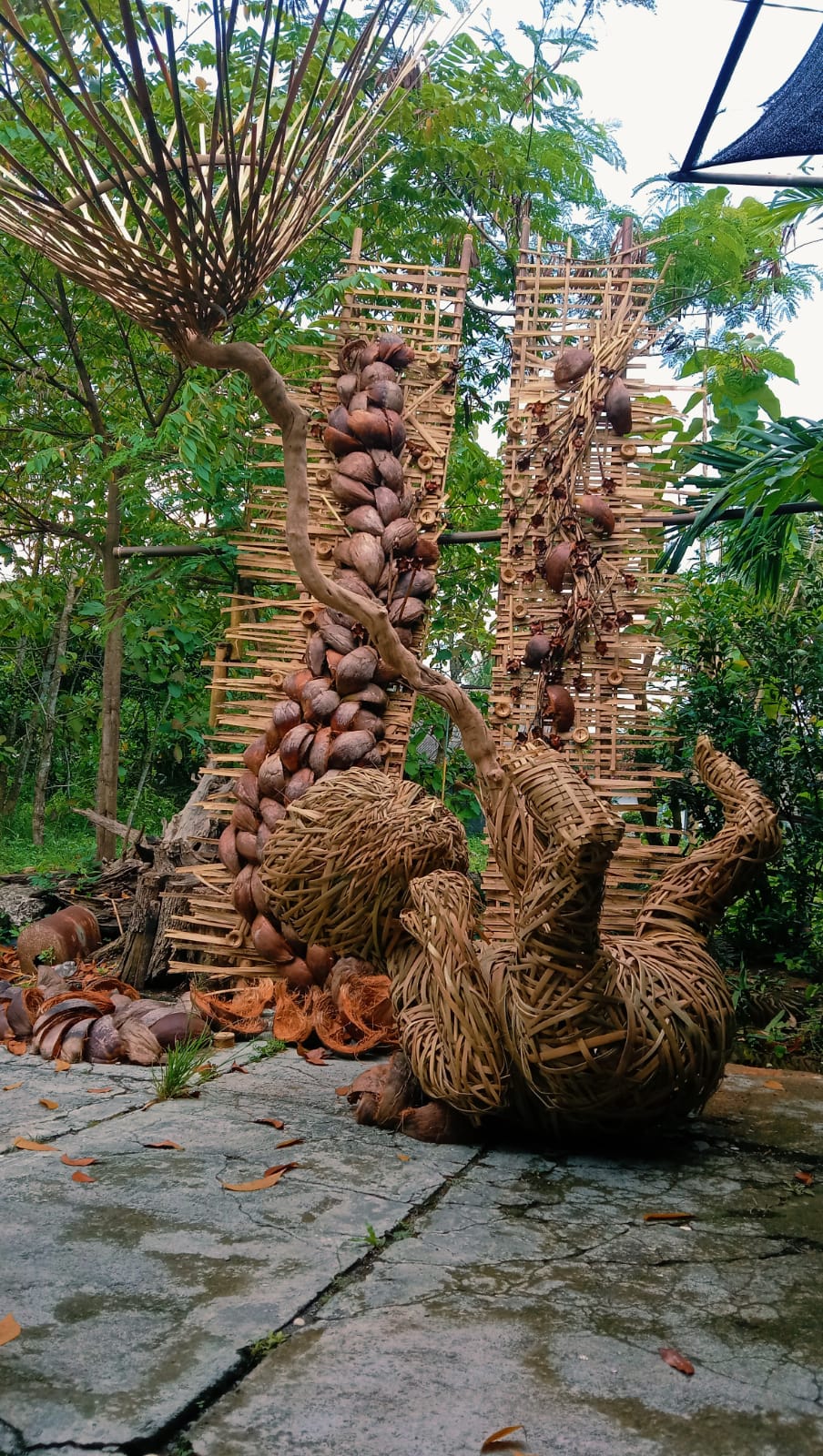 Karya instalasi tersebut antara lain berjudul “Lawang” yang menyerupai gerbang besar, “Mangan Ora Mangan Kumpul” berupa deretan wayang dari tempurung kelapa yang dimakan tupai (cumplung), serta “Kelahiran” yang memvisualisasikan janin dari anyaman bambu.